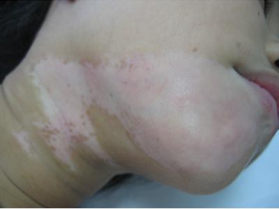 节段型白癜风的皮损面积通常较小,病情发展趋势明显,容易控制。白斑为一片或者数片,沿着某一皮神经节段支配的皮肤区域走向分布,多为单侧分布;第二,节段型白癜风大多会发生白发,部位通常为头发和眉毛。调查发现,儿童为阶段型白癜风的易发人群,占发病总数的20%左右。据病损处色素脱失情况又可将该病分为完全型与不完全型两种。前者对二羟苯丙氨酸(DOPA)反应阴性,黑素细胞消失,治疗反应差。后者对DOPA反应阳性,黑素细胞数目减少,康复机率大。>>>节段型白癜风还有哪些危害呢,点击自助挂号医生吧!