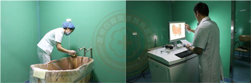 熊主任先采用智能308光疗配合中医药浴为其治疗,调节患者身体免疫力与微循环,通过308光疗激活黑色素细胞活性。