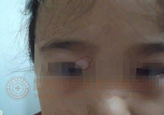 (治疗两个疗程后康复照片,眼角白斑已经消失不见,原皮损处颜色于正常肤色无异。)