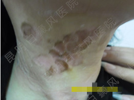 ▲病史:曾在当地某医院长期治疗过,由于长期采用单一治疗,效果不佳。费用也比较高,令患者颇为失望,遂放弃治疗。近日有扩散现象,通过网络预约来我院就诊。
