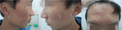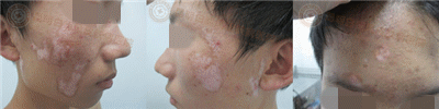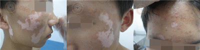 ▲病 史:患者1年前面部出现白斑,多次治疗不见好转,特来到我院治疗