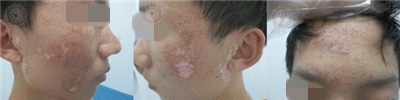 【治疗2个疗程后康复照片,面部白斑已经消失,皮损也恢复正常。】